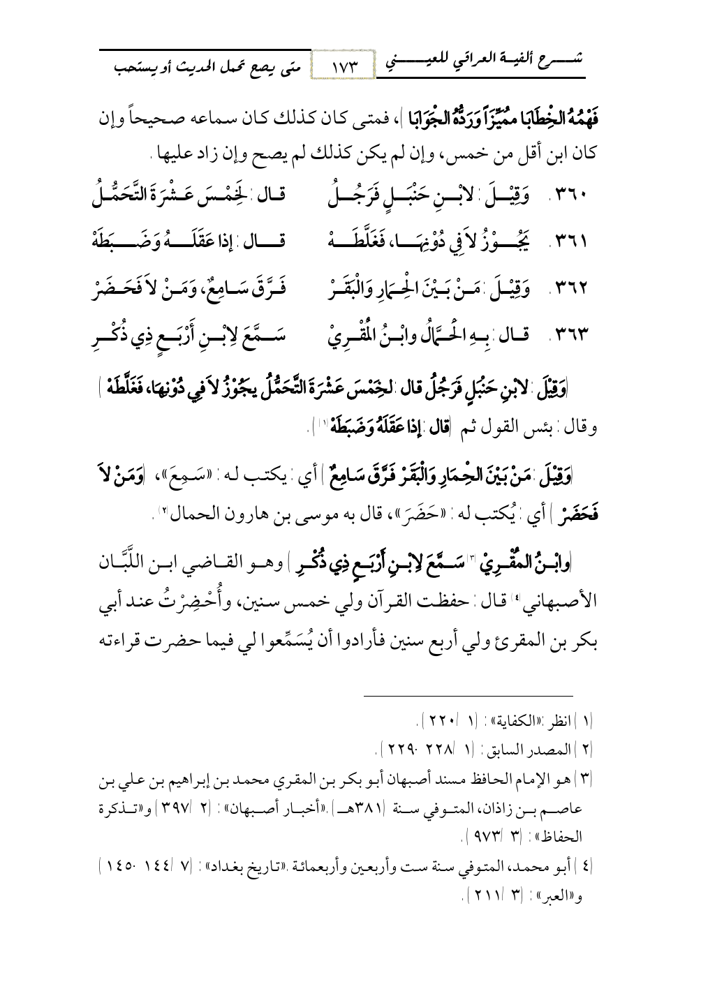 363 - قال: بِهِ الَحْمَّالُ وابْنُ الْمُقْرِيْ ... سَمَّعَ لاِبْنِ أَرْبَعٍ ذِي ذُكْرِ