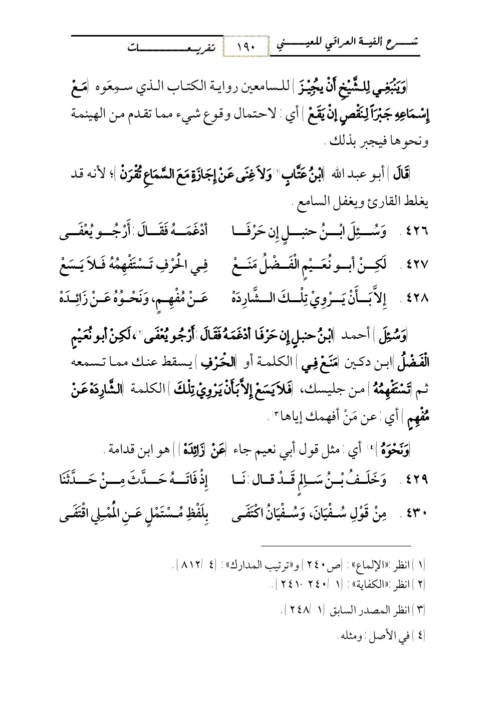 426 - وَسُئِلَ ابْنُ حنبلٍ إِن حَرْفَا ... أدْغَمَهُ فَقَالَ: أَرْجُو يُعْفَى