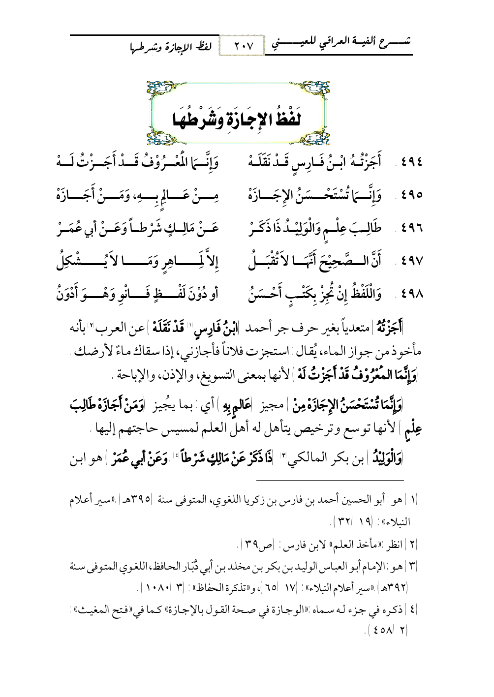 494 - أَجَزْتُهُ ابْنُ فَارِسٍ قَدْ نَقَلَهْ ... وَإِنَّمَا الْمَعْرُوْفُ قَدْ أَجَزْتُ لَهْ