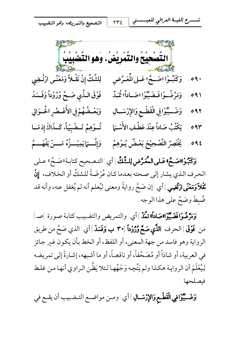 594 - يَخْتَصِرُ التَّصْحِيْحَ بَعْضٌ يُوْهِمُ ... وَإِنَّمَا يَمِيْزُهُ مَنْ يَفْهَمُ