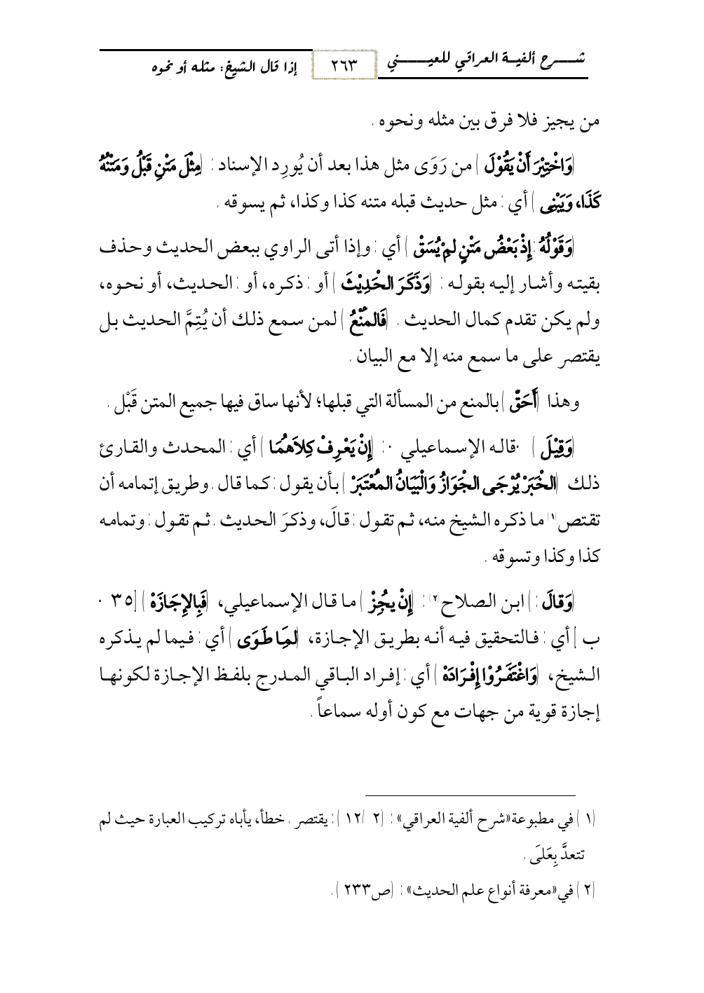 (¬1) في مطبوعة «شرح ألفية العراقي»: (2/ 12): يقتصر. خطأ، يأباه تركيب العبارة حيث لم تتعدَّ بِعَلَى.