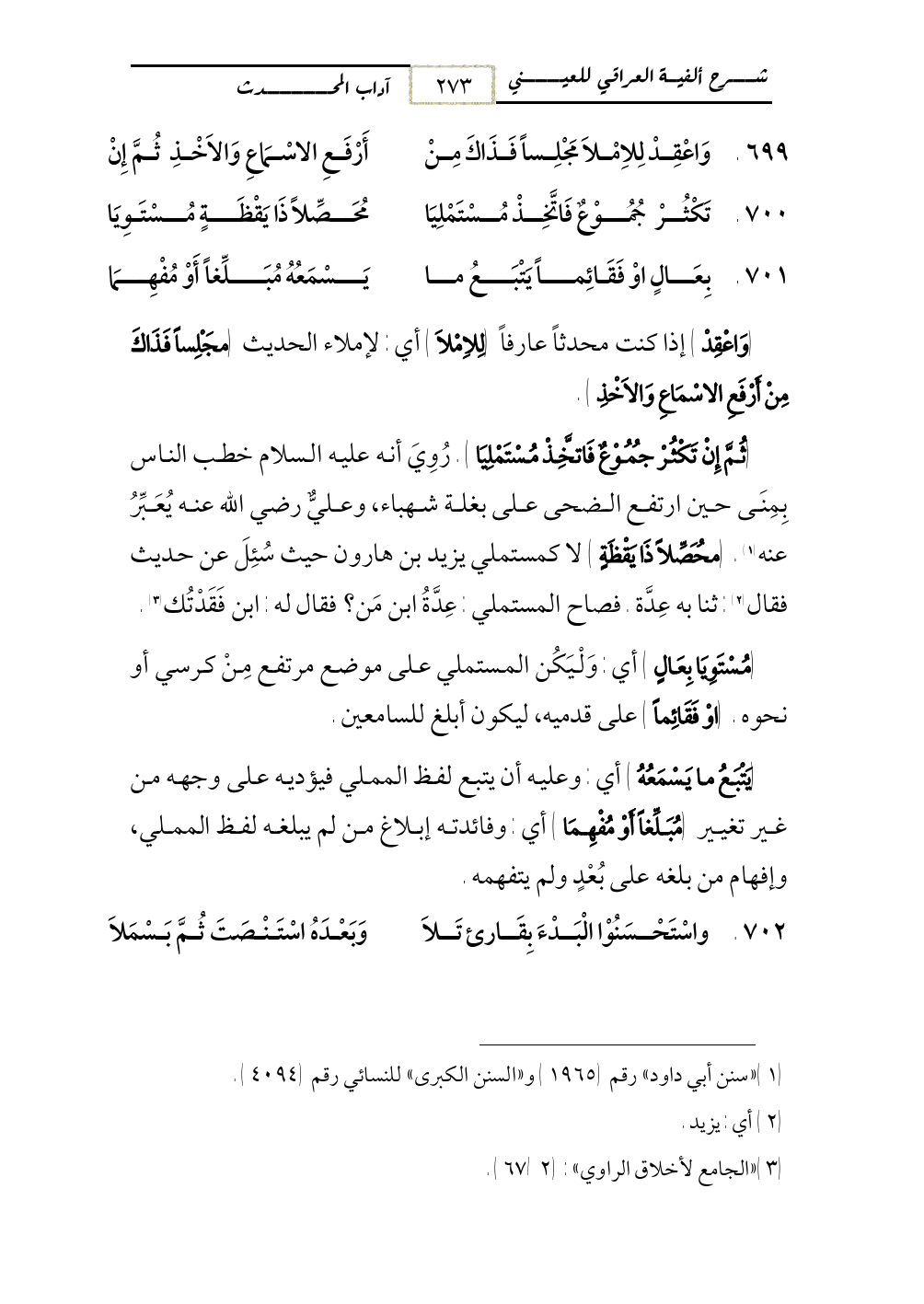 700 - تَكْثُرْ جُمُوْعٌ فَاتَّخِذْ مُسْتَمْلِيَا ... مُحَصِّلاً ذَا يَقْظَةٍ مُسْتَوِيَا