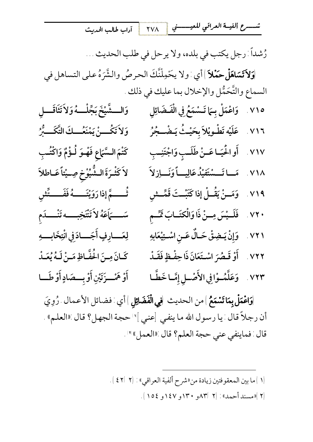 718 - مَا تَسْتَفيْدُ عَالِياً وَنَاِزلاَ ... لاَ كَثْرَةَ الشُّيُوْخِ صِيْتاً عَاطلاَ