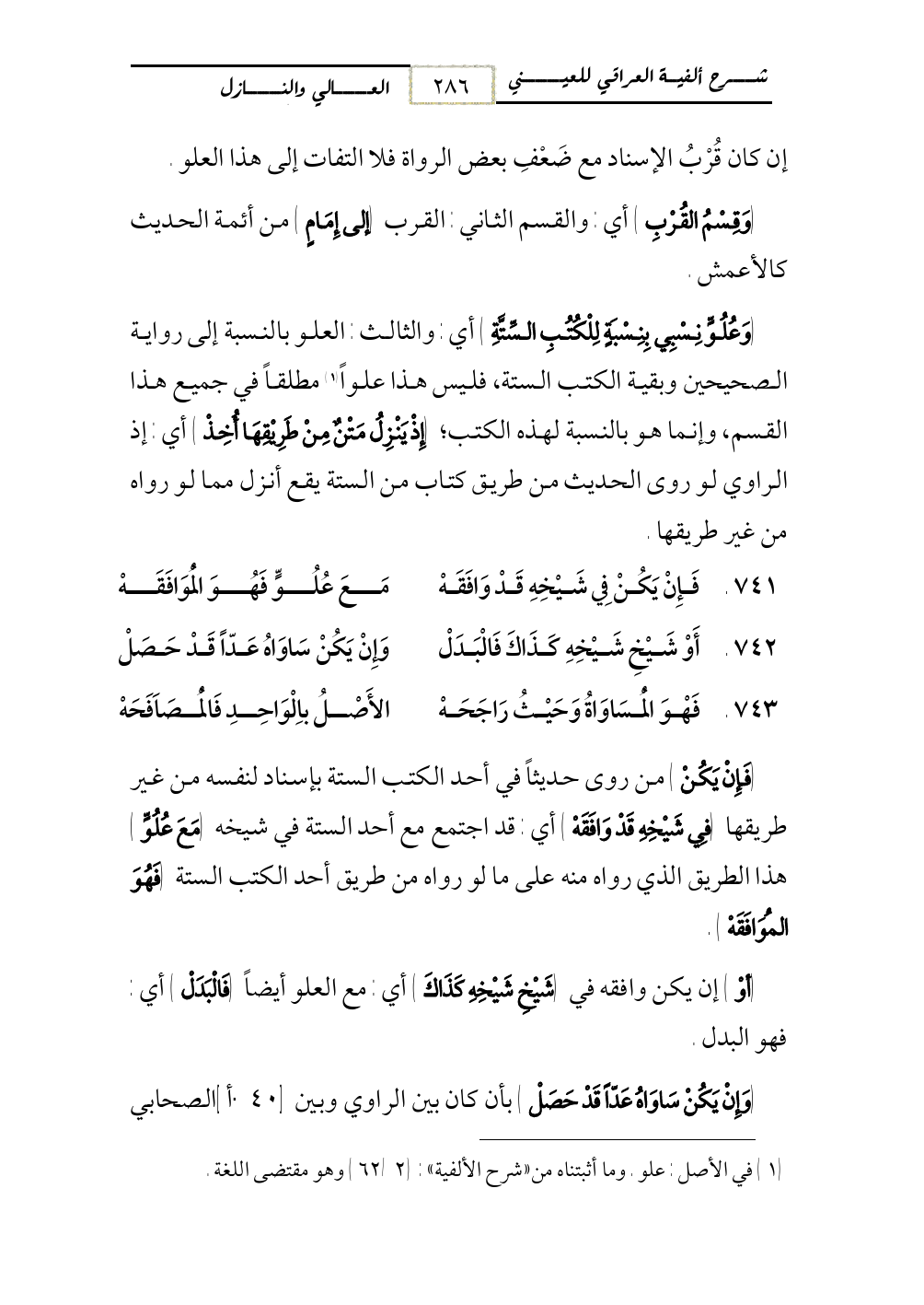 (¬1) في الأصل: علو. وما أثبتناه من «شرح الألفية»: (2/ 62) وهو مقتضى اللغة.