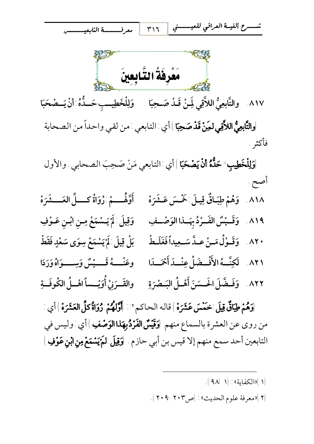 817 - والتَّابعِيُّ اللاَّقِي لِمَنْ قَدْ صَحِبَا ... وَلِلْخَطِيبِ حَدُّهُ: أنْ يَصْحَبَا
