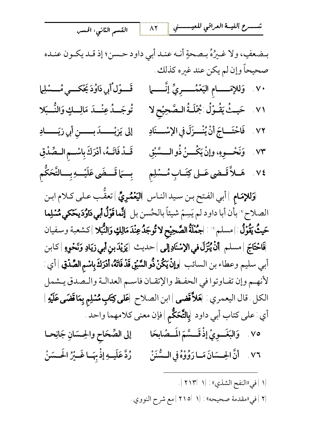 70 - وَللإمَامِ اليَعْمُرِيِّ إنَّما ... قَوْل ُأبي دَاوُدَ يَحْكي مُسْلِما