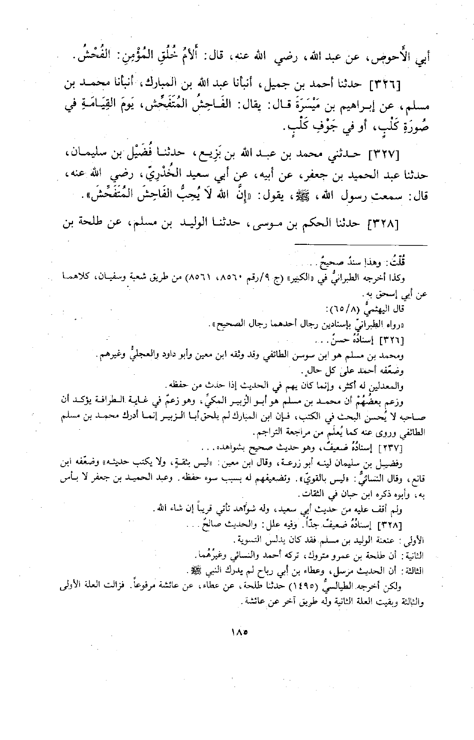 327 - حَدَّثَنِي مُحَمَّدُ بْنُ عَبْدِ اللَّهِ بْنِ بَزِيعٍ، حَدَّثَنَا فُضَيْلُ بْنُ سُلَيْمَانَ، حَدَّثَنَا عَبْدُ الْحَمِيدُ بْنُ جَعْفَرٍ، عَنْ أَبِيهِ، عَنْ أَبِي سَعِيدٍ الْخُدْرِيِّ رَضِيَ اللَّهُ عَنْهُ قَالَ: سَمِعْتُ رَسُولَ اللَّهِ صَلَّى اللهُ عَلَيْهِ وَسَلَّمَ يَقُولُ: «إِنَّ §اللَّهَ لَا يُحِبُّ الْفَاحِشَ الْمُتَفَحِّشَ»