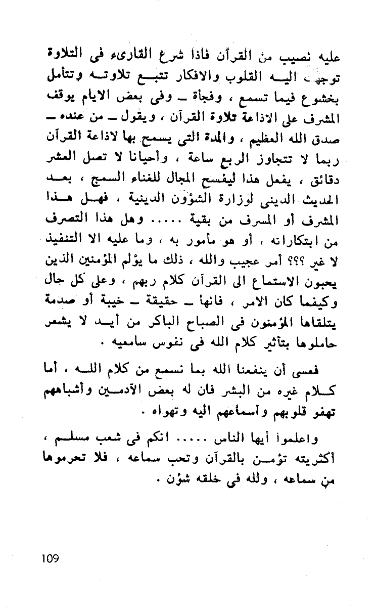 أكثريته تؤمن بالقرآن وتحب سماعه، فلا تحرموها من سماعه، ولله في خلقه شؤون.