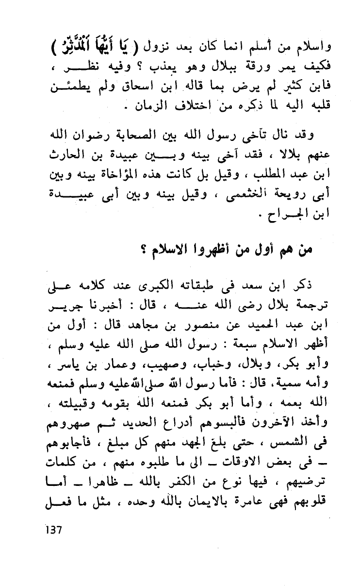 وإسلام من أسلم إنما كان بعد نزول (يا أيها المدثر) فكيف يمر ورقة ببلال وهو يعذب؟ وفيه نظر، فابن كثير لم يرض بما قاله ابن إسحاق ولم يطمئن قلبه إليه لما ذكره من اختلاف الزمان.