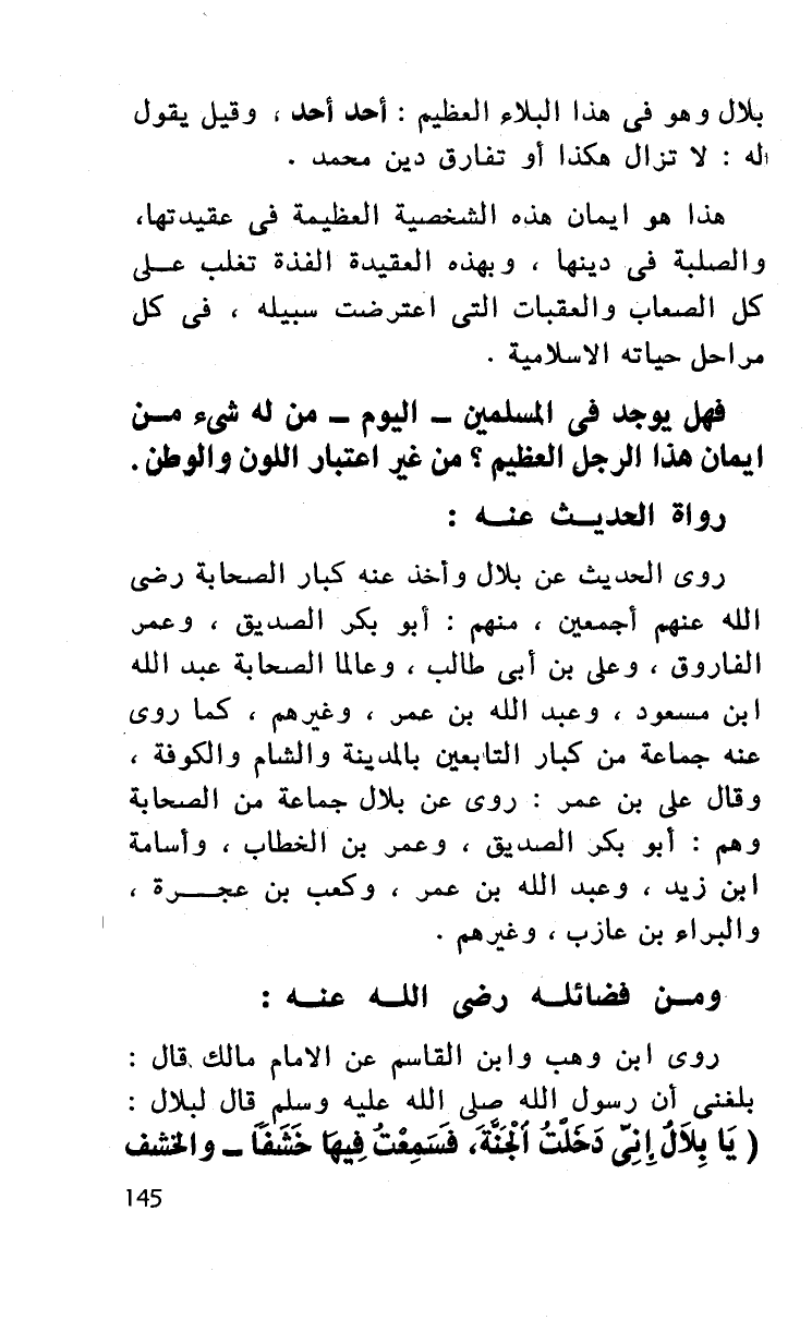 بلال وهو في هذا البلاء العظيم أحد أحد، وقيل يقول له: لا تزال هكذا أو تفارق دين محمد.