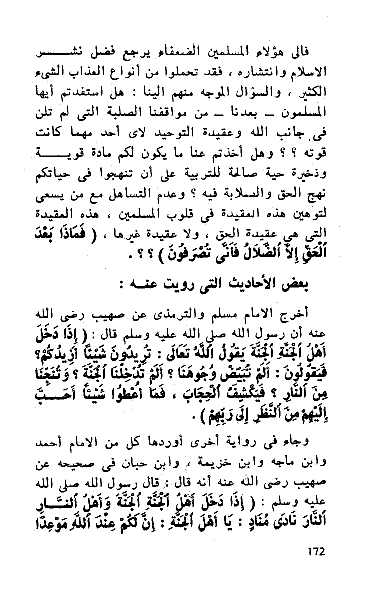 أخرج الإمام مسلم والترمذي عن صهيب رضي الله عنه أن رسول الله صلى الله عليه وسلم قال: (إذا دخل أهل الجنة الجنة يقول الله تعالى: تريدون شيئا أزيدكم؟ فيقولون: ألا تبيض وجوهنا؟ ألم تدخلنا الجنة؟ وتنجنا من النار؟ فيكشف الحجاب، فما أعطوا شيئا أحب إليهم من النظر إلى ربهم).