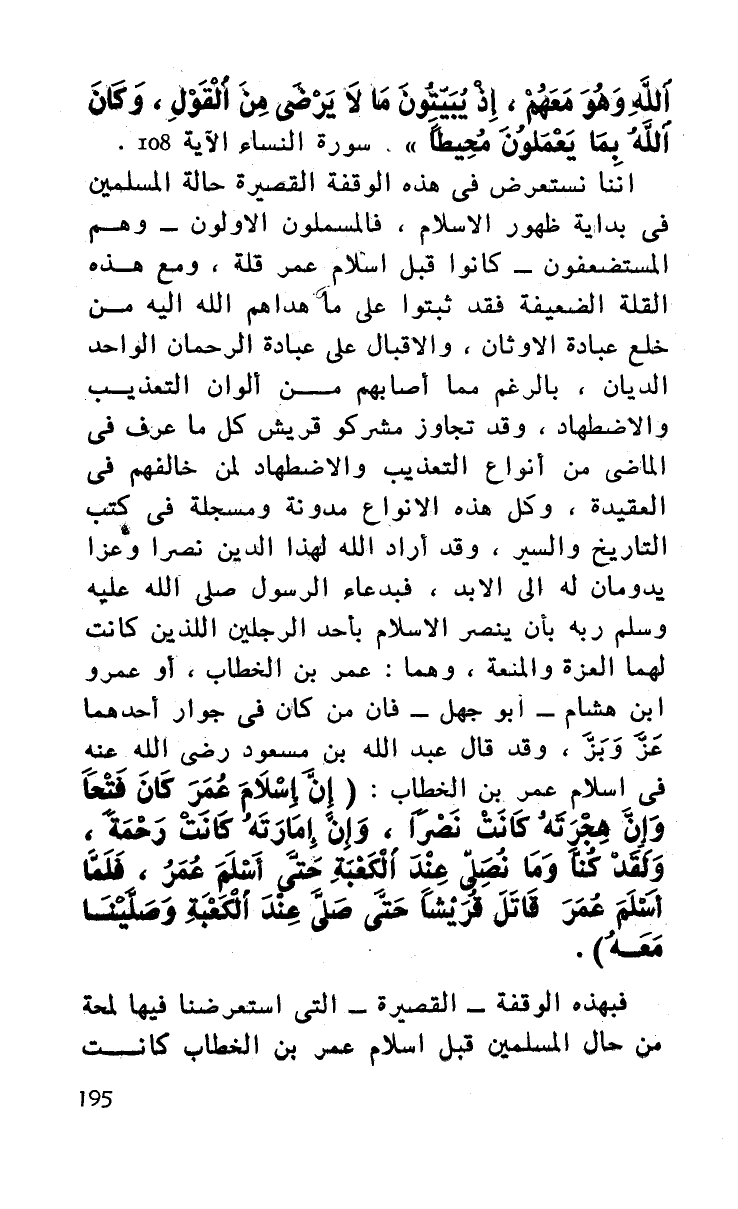 فبهذه الوقفة - القصيرة - التي استعرضنا فيها لمحة من حال المسلمين قبل إسلام عمر بن الخطاب كانت