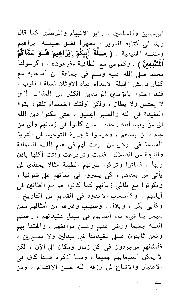 الموحدين والمسلمين، وأبو الأنبياء والمرسلين كما قال ربنا في كتابه العزيز، مظهرا فضل خليله إبراهيم وملته الحنيفية (ملة أبيكم إبراهيم هو سماكم المسلمين) وكموسى مع الطاغية ((فرعون)) وكرسولنا محمد صلى الله عليه وسلم في جماعة من أصحابه مع كفار قريش الجهلة الأشداء عباد الأوثان قساة القلوب، فقد ألحقوا بالمؤمنين الموحدين الكثير من العذاب الذي لا يحتمل ولا يطاق ولكن أولئك الضعفاء تلقوه بقوة العقيدة في الله والصبر الجميل حتى مكنوا دين الله إلى من يعبد الله وحده ممن كانوا في زمانهم وإلى من جاء من بعدهم وغرسوا شجرة التوحيد في التربة الصالحة في أرض من سبقت لهم في علم الله السعادة والنجاة من الضلال فنمت وترعرعت وآتت أكلها بإذن ربها فماتوا وتركوا سيرتهم الطيبة مثالا يحتذى لمن يأتي من بعدهم كي يسيروا في حياتهم على ضوئها ويكونوا مع ظالمي زمانهم كما كانوا هم مع الظالمين في أيامهم وكأصحاب الأخدود في القديم من التاريخ وكأبي بكر وبلال وصهيب وغيرهم من أمثالهم ممن سيمر بنا شيء مما أصابهم في سبيل عقيدتهم رحمهم الله جميعا ورضي عنهم وعن مواقفهم وألحقنا بهم ونحن ثابتون على عقيدتنا غير مبدلين ولا مغيرين. فأمثالهم موجودون في كل زمان ومكان إلى الآن لكن لا يمكن استيعابهم جميعا وما أذكره هنا كاف في الاعتبار والاتباع لمن رزقه الله حسن الاقتداء، ومن