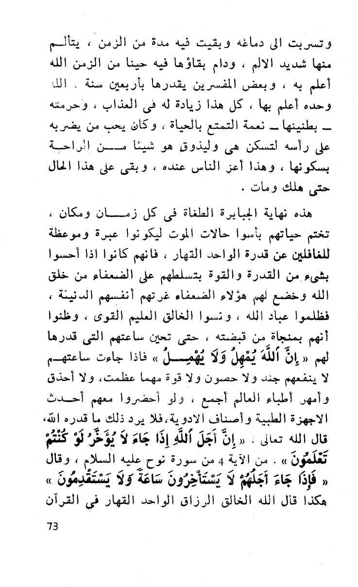هذه نهاية الجبابرة الطغاة في كل زمان ومكان تختم حياتهم بأسوإ حالات الموت ليكونوا عبرة وموعظة للغافلين عن قدرة الواحد القهار، فإنهم كانوا إذا أحسوا شيء من القدرة والقوة بتسلطهم على الضعفاء من خلق الله وخضع لهم هؤلاء الضعفاء غرتهم أنفسهم الدنيئة فظلموا عباد الله ونسوا الخالق العليم القوي، وظنوا أنهم بمنجاة من قبضته، حتى تحين ساعتهم التي قدرها لهم ((إن الله يمهل ولا يهمل)) فإذا جاءت ساعتهم لا ينفعهم جند ولا حصون ولا قوة مهما عظمت، ولا أحذق وأمهر أطباء العالم أجمع، ولو أحضروا معهم أحدث الأجهزة الطبية وأصناف الأدوية، فلا يرد ذلك ما قدره الله، قال الله تعالى ((إن أجل الله إذا جاء لا يؤخر لو كنتم تعلمون)) من الآية 4 من سورة نوح عليه السلام، وقال ((فإذا جاء أجلهم لا يستأخرون ساعة ولا يستقدمون)) هكذا قال الله الخالق الرزاق الواحد القهار في القرآن