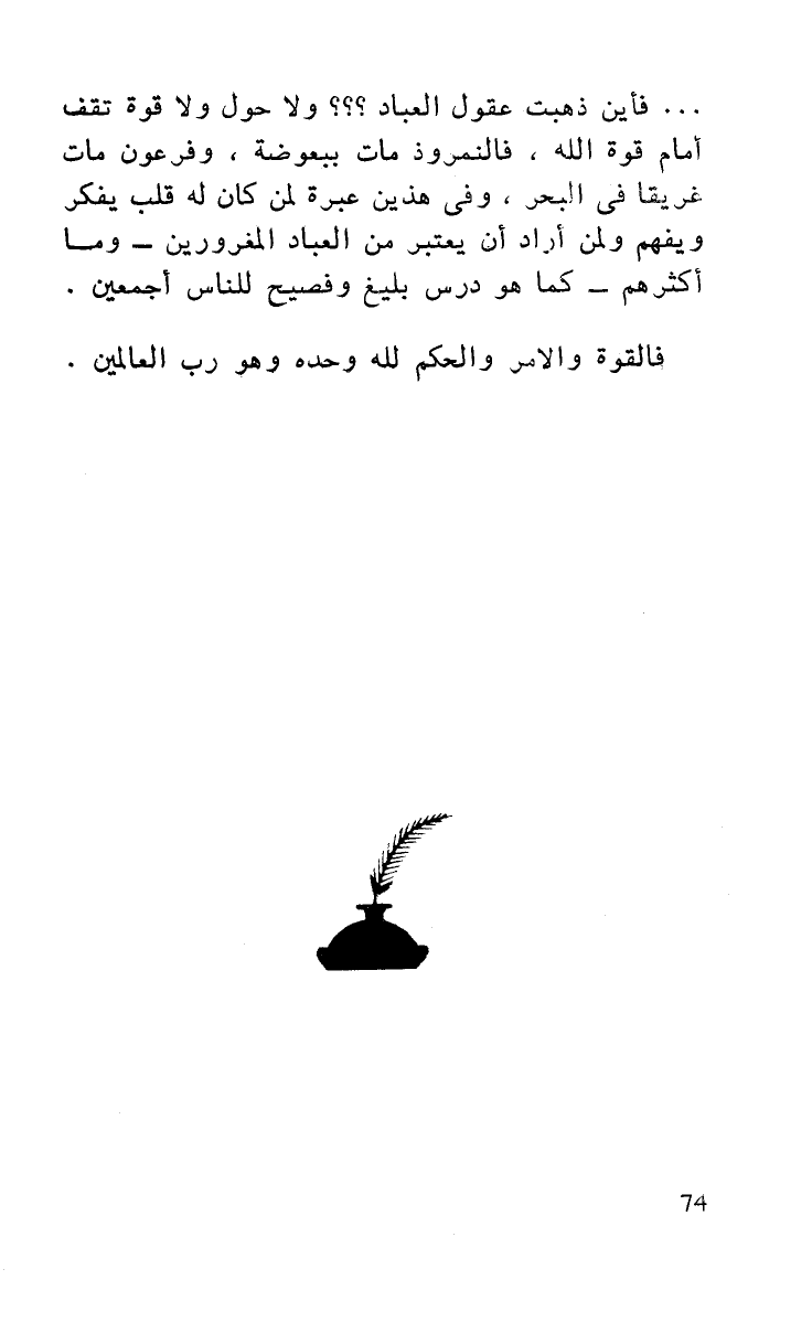 فأين ذهبت عقول العباد؟؟؟ ولا حول ولا قوة تقف أمام قوة الله فالنمروذ مات ببعوضة وفرعون مات غرقا في البحر وفي هذين عبرة لمن كان له قلب يفكر ويفهم ولمن أراد أن يعتبر من العباد المغرورين - وما أكثرهم - كما هو درس بليغ وفصيح للناس أجمعين.
