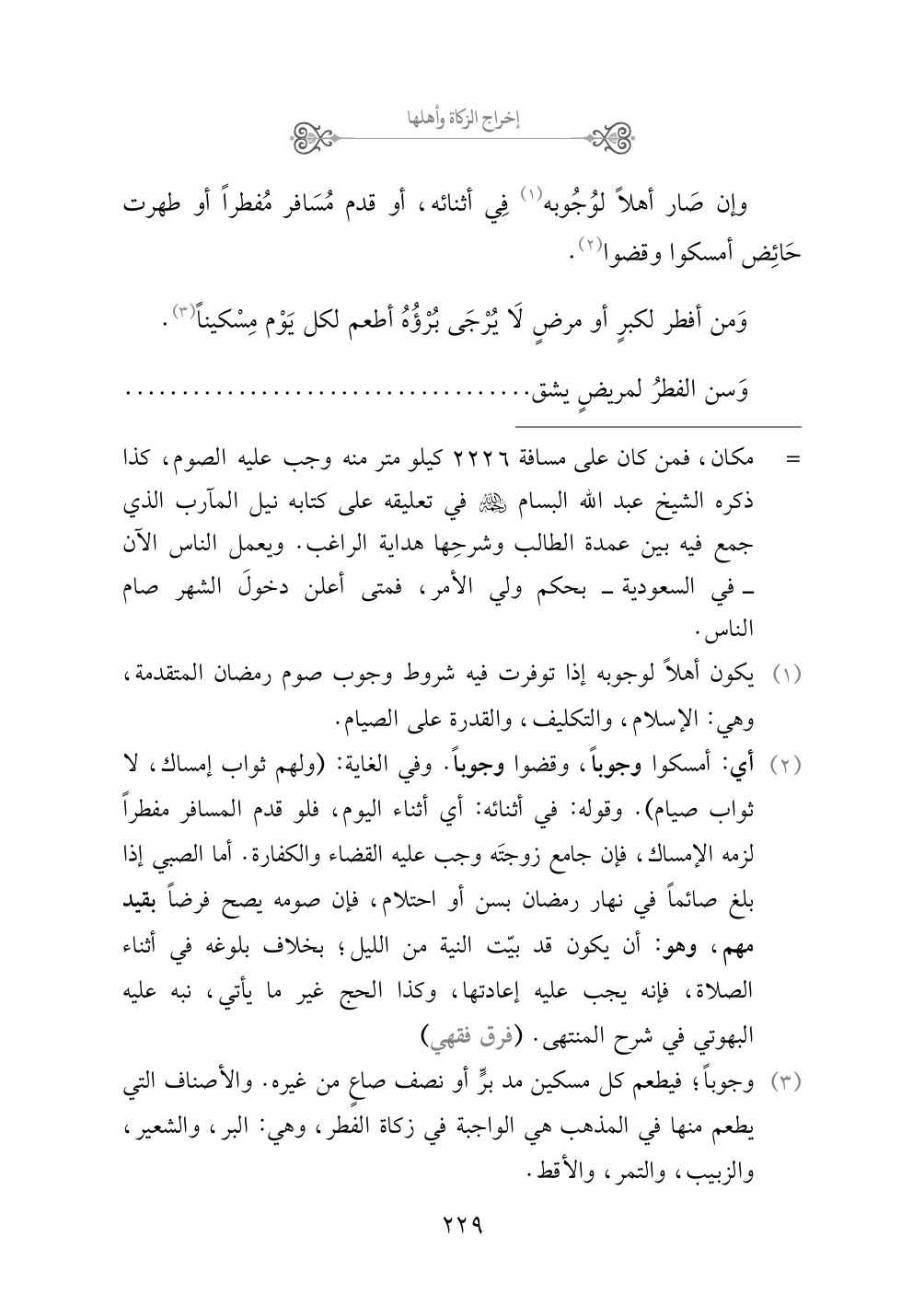 (¬٢) أي: أمسكوا وجوباً، وقضوا وجوباً. وفي الغاية: (ولهم ثواب إمساك، لا ثواب صيام). وقوله: في أثنائه: أي أثناء اليوم، فلو قدم المسافر مفطراً لزمه الإمساك، فإن جامع زوجتَه وجب عليه القضاء والكفارة. أما الصبي إذا بلغ صائماً في نهار رمضان بسن أو احتلام، فإن صومه يصح فرضاً بقيد مهم، وهو: أن يكون قد بيّت النية من الليل؛ بخلاف بلوغه في أثناء الصلاة، فإنه يجب عليه إعادتها، وكذا الحج غير ما يأتي، نبه عليه البهوتي في شرح المنتهى. (فرق فقهي)