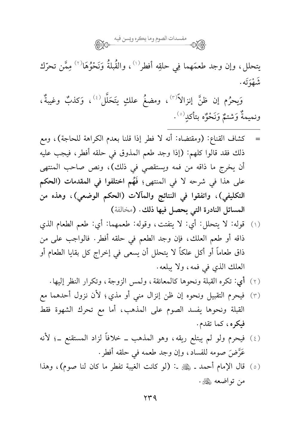 وَيحرُم إن ظنَّ إنزالاً (¬٣)، ومضغُ علكٍ يتَحَلَّل (¬٤)، وَكذبٌ وغيبةٌ، ونميمةٌ وَشتمٌ وَنَحْوهُ بتأكدٍ (¬٥).