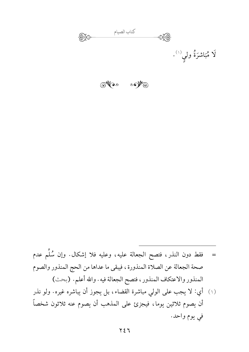(¬١) أي: لا يجب على الولي مباشرة القضاء، بل يجوز أن يباشره غيره. ولو نذر أن يصوم ثلاثين يومًا، فيجزئ على المذهب أن يصوم عنه ثلاثون شخصاً في يوم واحد.