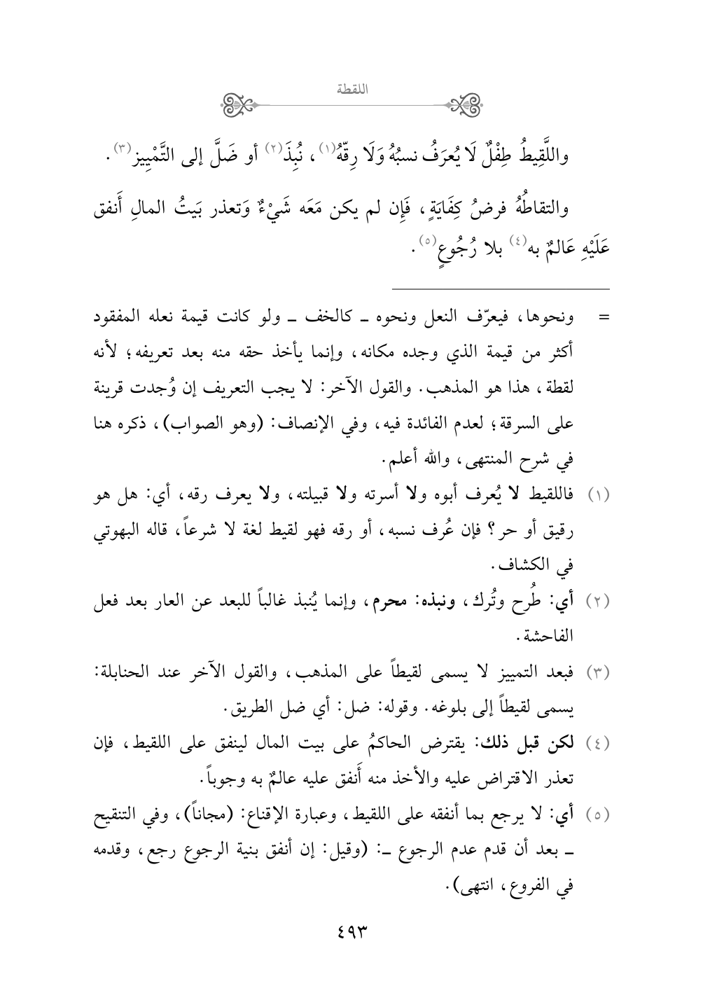 (¬٥) أي: لا يرجع بما أنفقه على اللقيط، وعبارة الإقناع: (مجاناً)، وفي التنقيح - بعد أن قدم عدم الرجوع -: (وقيل: إن أنفق بنية الرجوع رجع، وقدمه في الفروع، انتهى).