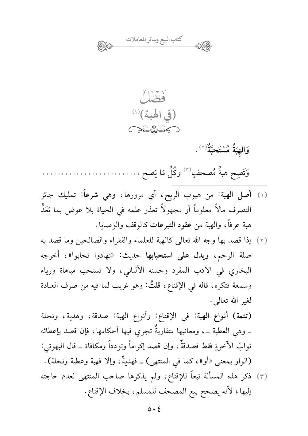 (تتمة) أنواع الهبة: في الإقناع: وأنواع الهبة: صدقة، وهدية، ونحلة - وهي العطية -، ومعانيها متقاربةٌ تجري فيها أحكامها، فإن قصد بإعطائه ثوابَ الآخرةِ فقط فصدقةٌ، وإن قصد إكراماً وتودداً ومكافاة - قال البهوتي: (الواو بمعنى «أو»، كما في المنتهى) - فهديةٌ، وإلا فهبة وعطية ونحلة).
