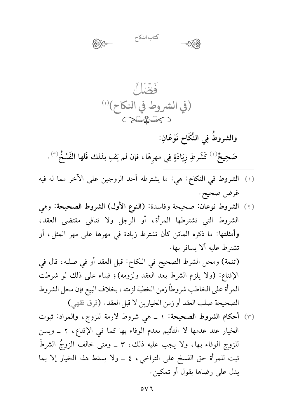 (¬١) الشروط في النكاح: هي: ما يشترطه أحد الزوجين على الآخر مما له فيه غرض صحيح.