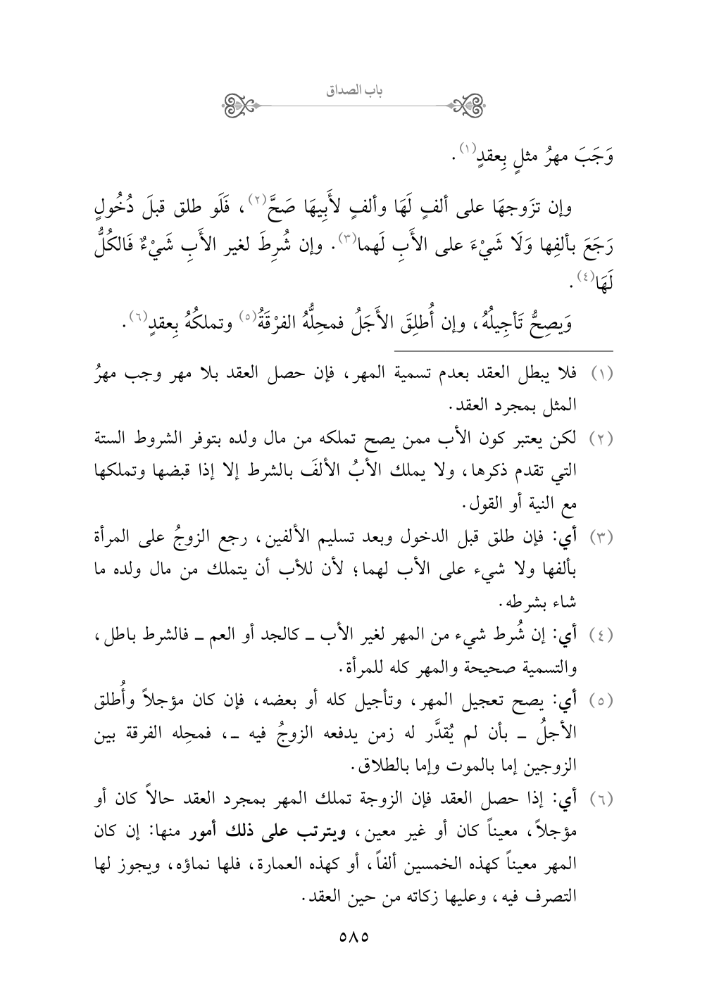 (¬٥) أي: يصح تعجيل المهر، وتأجيل كله أو بعضه، فإن كان مؤجلاً وأُطلق الأجلُ - بأن لم يُقدَّر له زمن يدفعه الزوجُ فيه -، فمحِله الفرقة بين الزوجين إما بالموت وإما بالطلاق.