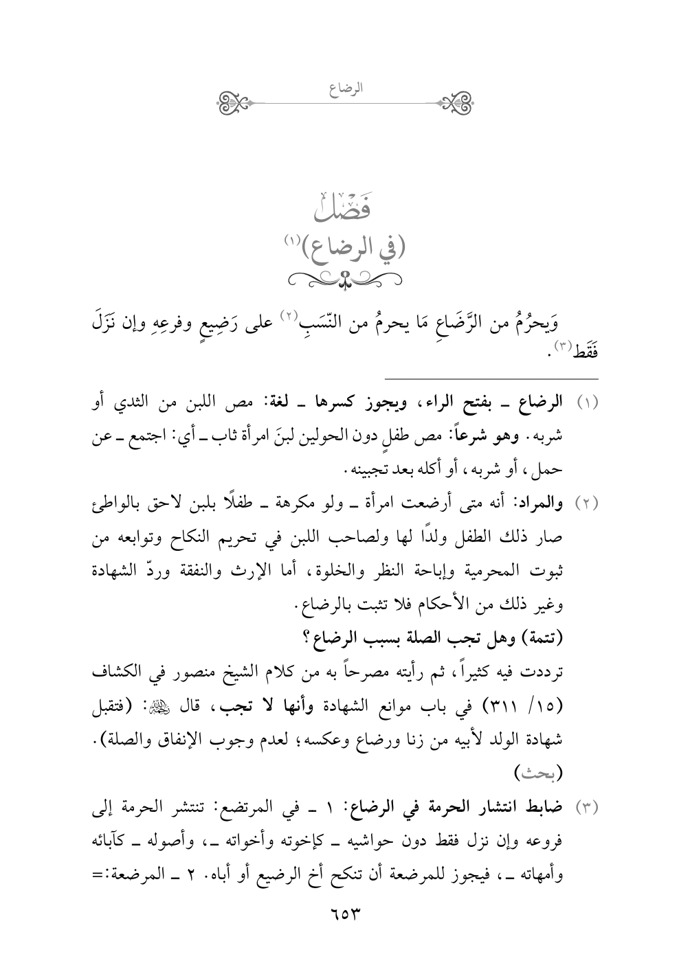 (¬١) الرضاع - بفتح الراء، ويجوز كسرها - لغة: مص اللبن من الثدي أو شربه. وهو شرعاً: مص طفلٍ دون الحولين لبنَ امرأة ثاب - أي: اجتمع - عن حمل، أو شربه، أو أكله بعد تجبينه.