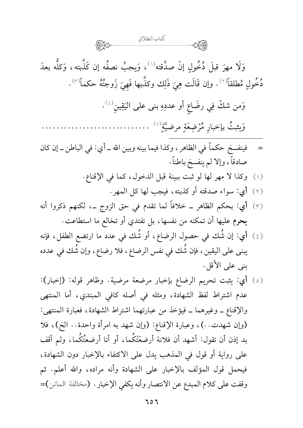 (¬٥) أي: يثبت تحريم الرضاع بإخبار مرضعة مرضية. وظاهر قوله: (إخبار): عدم اشتراط لفظ الشهادة، ومثله في أصله كافي المبتدي، أما المنتهى والإقناع - وغيرهما - فيؤخذ من عبارتهما اشتراط الشهادة، فعبارة المنتهى: (وإن شهدت .. )، وعبارة الإقناع: (وإن شهد به امرأة واحدة .. الخ)، فلا بد إذن أن تقول: أشهد أن فلانة أرضعَتْكُما، أو أنا أرضعتُكُما، ولم أقف على رواية أو قول في المذهب يدل على الاكتفاء بالإخبار دون الشهادة، فيحمل قول المؤلف بالإخبار على الشهادة وأنه مراده، والله أعلم، ثم وقفت على كلام المبدع عن الانتصار وأنه يكفي الإخبار. (مخالفة الماتن) وتقبل شهادتها سواء شهدت على فعل نفسها أو فعل غيرها، وكذلك تقبل شهادة الرجل وأَولى. والأصل في هذا: حديث عقبة بن الحارث لما تزوج أم يحيى بنت أبي إهاب جاءت أمَة سوداء، فقالت: قد أرضعتكما، قال: فذهبت إلى الرسول صلى الله عليه وسلم وذكرت له ذلك، فقال: «كيف وقد قيل»، ففارقها وتزوجت زوجاً غيره، وفي رواية: «دعها عنك»، رواه البخاري.