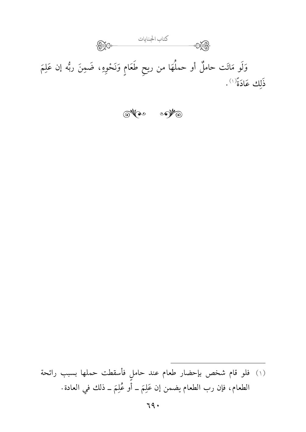(¬١) فلو قام شخص بإحضار طعام عند حاملٍ فأسقطت حملها بسبب رائحة الطعام، فإن رب الطعام يضمن إن عَلِمَ - أو عُلِمَ - ذلك في العادة.