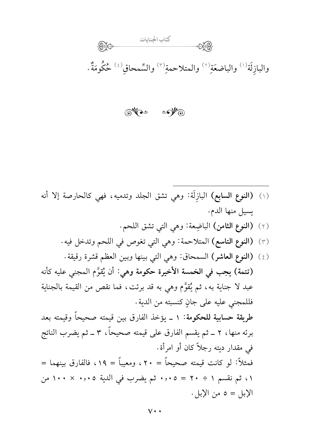 (¬١) (النوع السابع) البازِلَة: وهي تشق الجلد وتدميه، فهي كالحارصة إلا أنه يسيل منها الدم.
