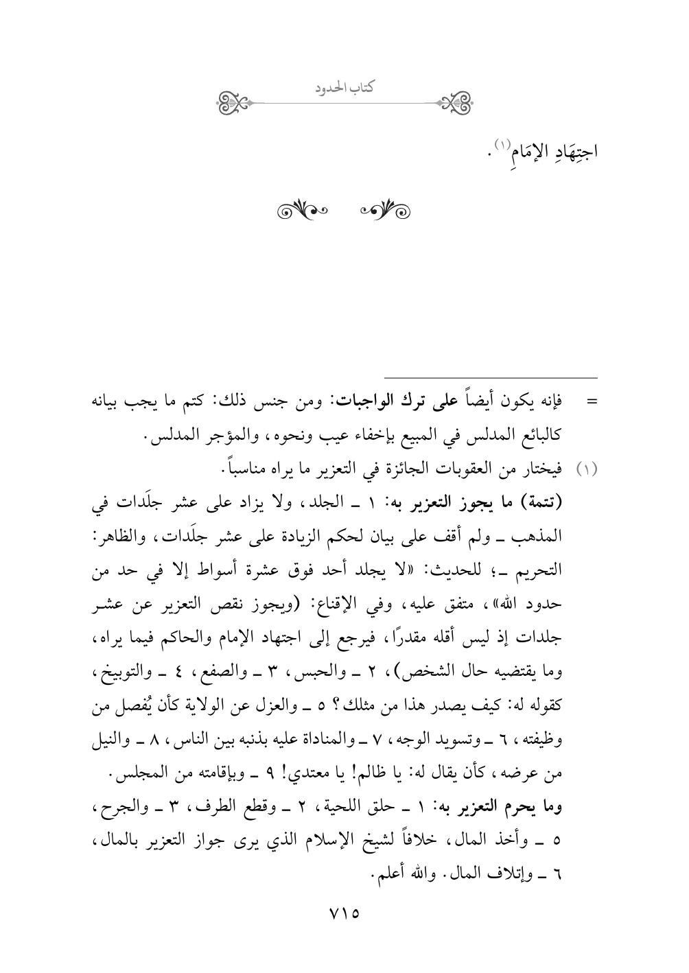 (¬١) فيختار من العقوبات الجائزة في التعزير ما يراه مناسباً.