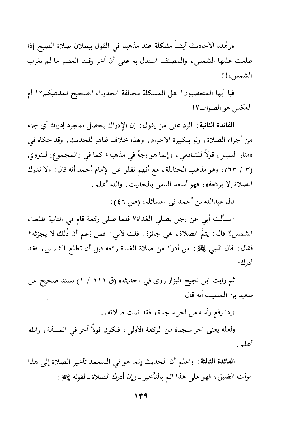 " وهذه الأحاديث أيضا مشكلة عند مذهبنا في القول ببطلان صلاة الصبح إذا طلعت
