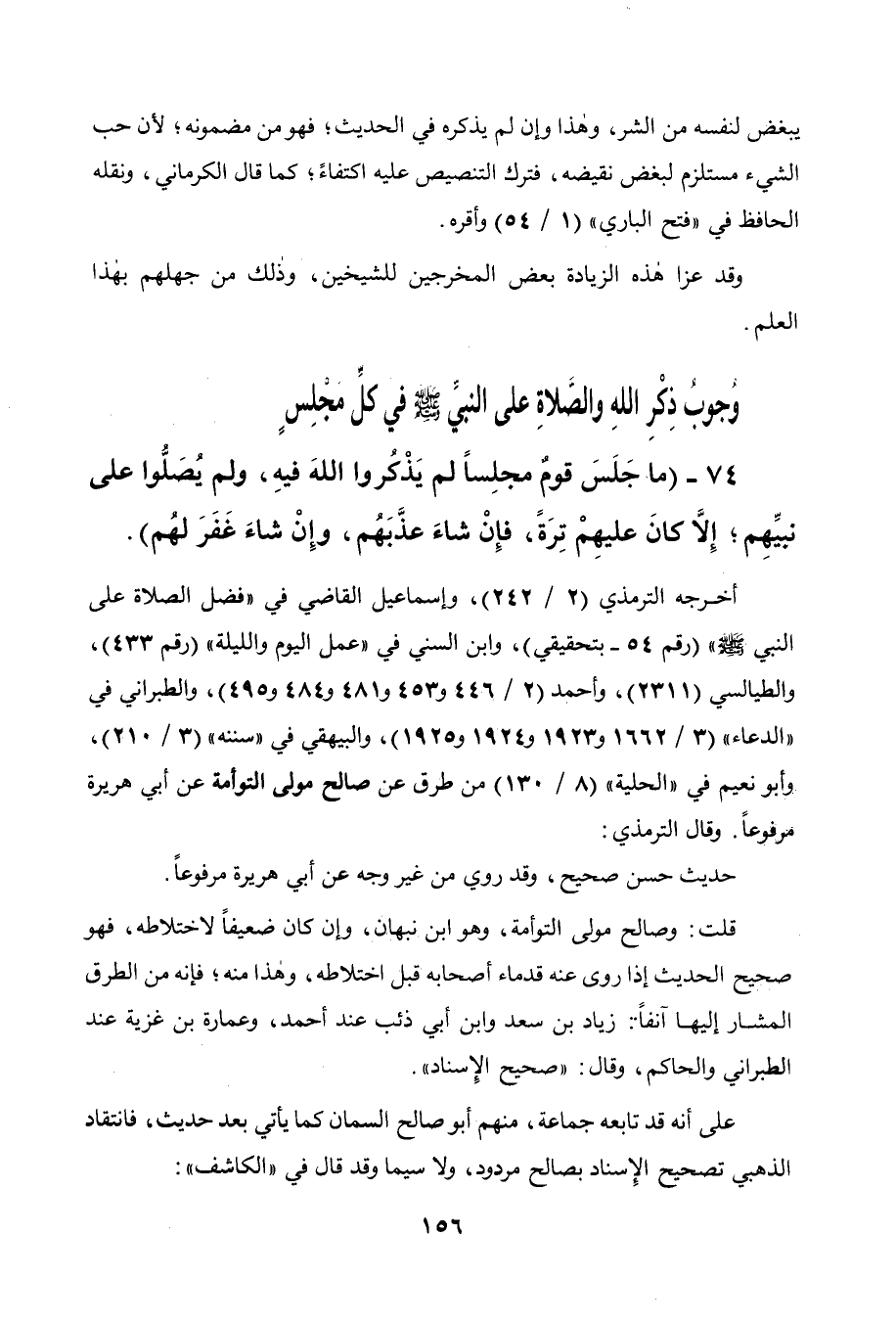 74 - " ما جلس قوم مجلسا لم يذكروا الله فيه ولم يصلوا على نبيهم إلا كان عليهم ترة