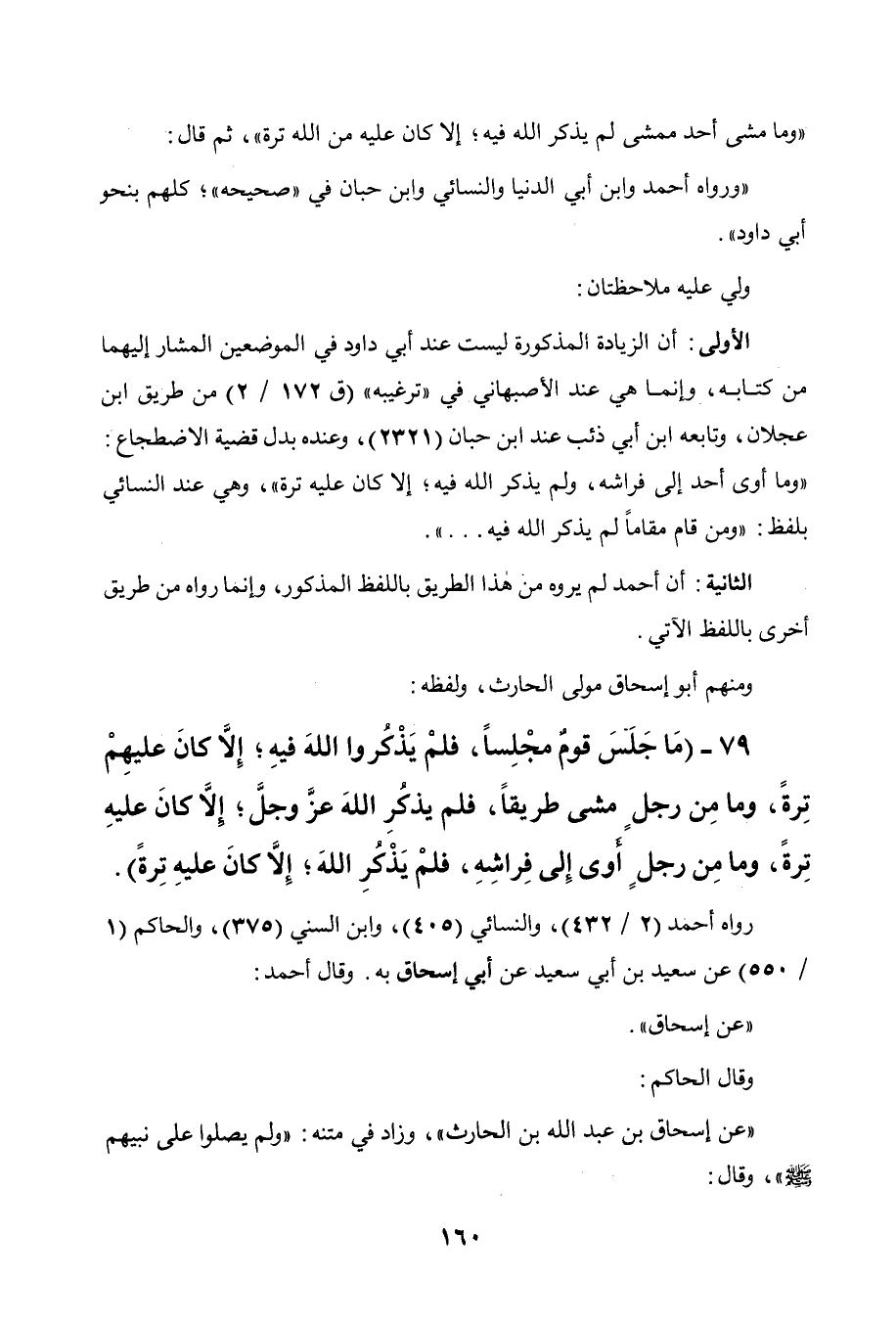 79 - " ما جلس قوم مجلسا فلم يذكروا الله فيه إلا كان عليهم ترة وما من رجل مشى