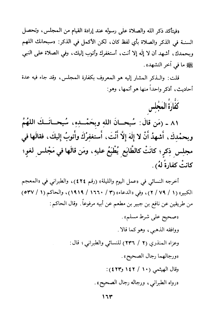 قلت: والذكر المشار إليه هو المعروف بكفارة المجلس، وقد جاء فيه عدة أحاديث