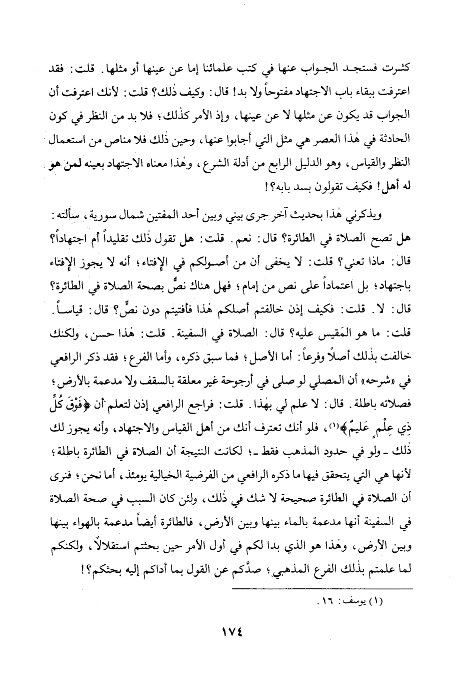 من الفرضية الخيالية يومئذ. أما نحن فنرى أن الصلاة في الطائرة صحيحة لا شك في