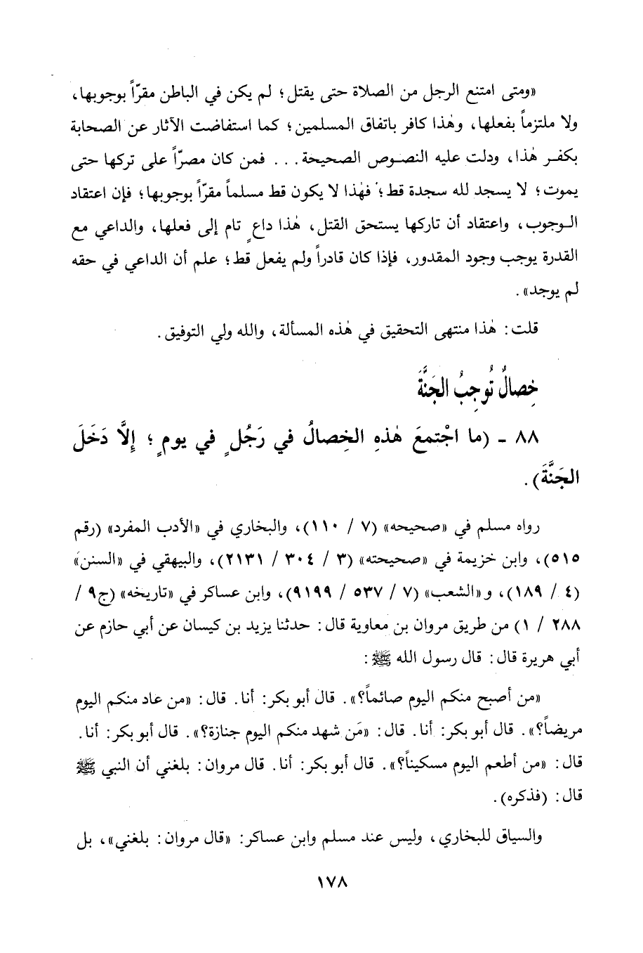 88 - " ما اجتمع هذه الخصال في رجل في يوم إلا دخل الجنة ".