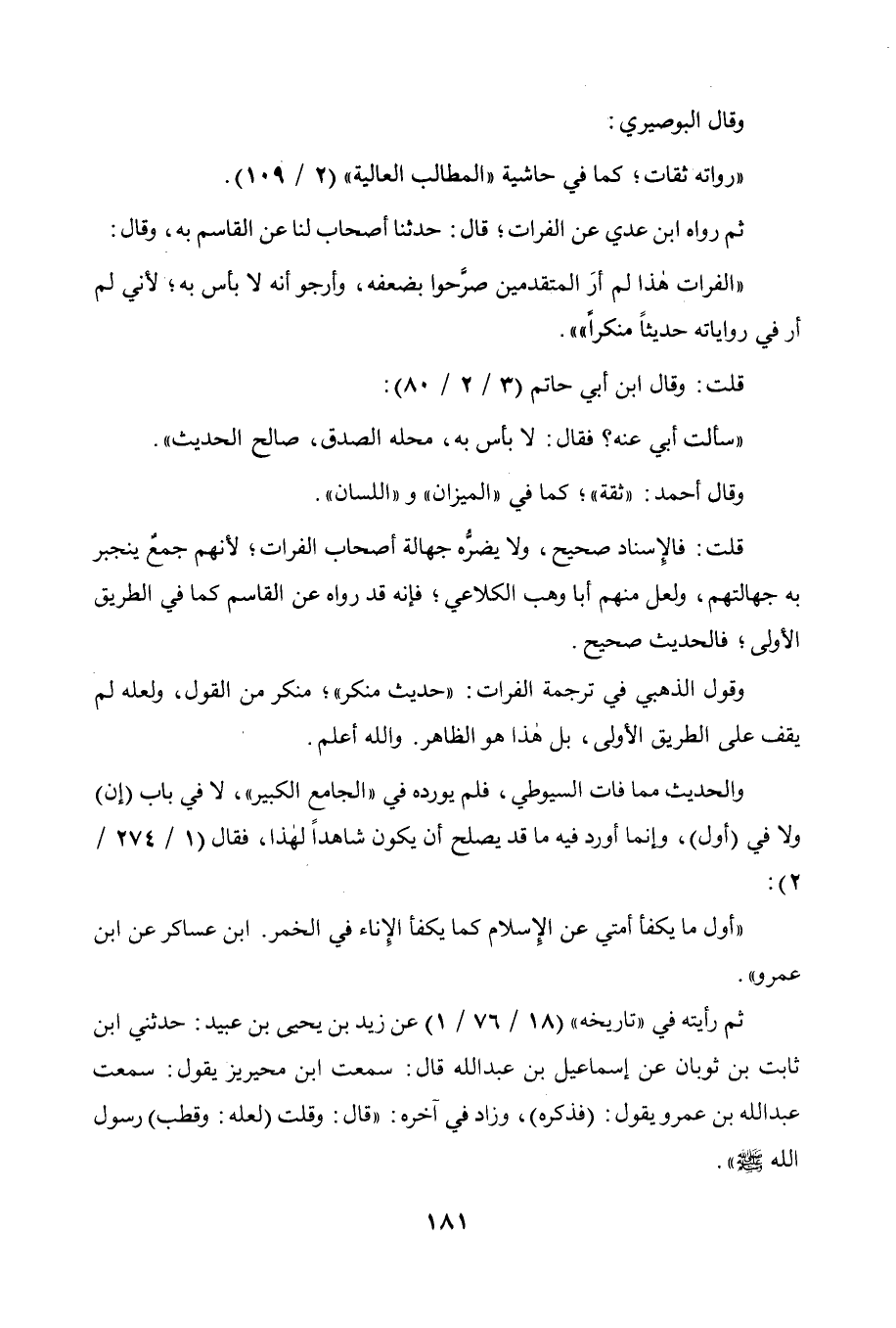 وقال: " الفرات هذا لم أر المتقدمين صرحوا بضعفه، وأرجو أنه لا بأس به،