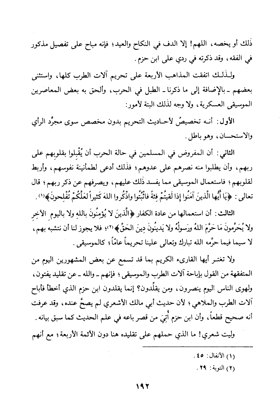 من القول بإباحة آلات الطرب والموسيقى، فإنهم - والله - عن تقليد يفتون،