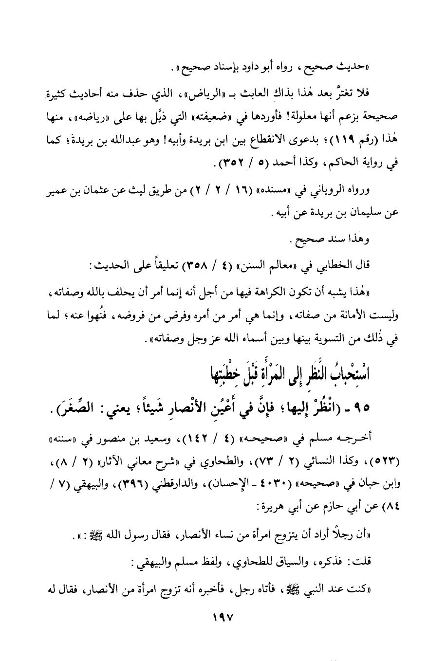 95 - " انظر إليها، فإن في أعين الأنصار شيئا. يعني الصغر ".