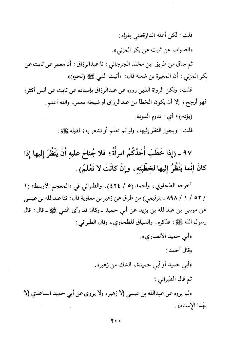 97 - " إذا خطب أحدكم امرأة فلا جناح عليه أن ينظر إليها إذا كان إنما ينظر إليها