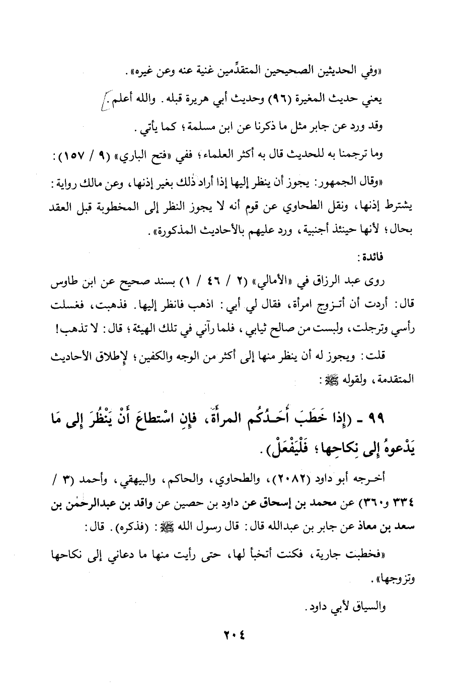 99 - " إذا خطب أحدكم المرأة، فإن استطاع أن ينظر إلى ما يدعوه إلى نكاحها فليفعل ".