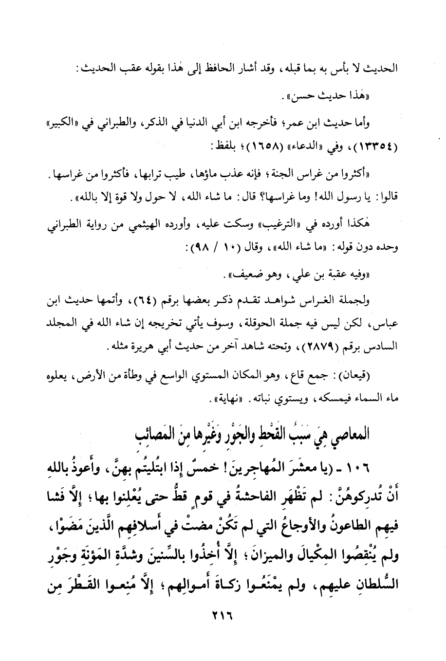 106 - " يا معشر المهاجرين! خمس إذا ابتليتم بهن وأعوذ بالله أن تدركوهن: لم تظهر