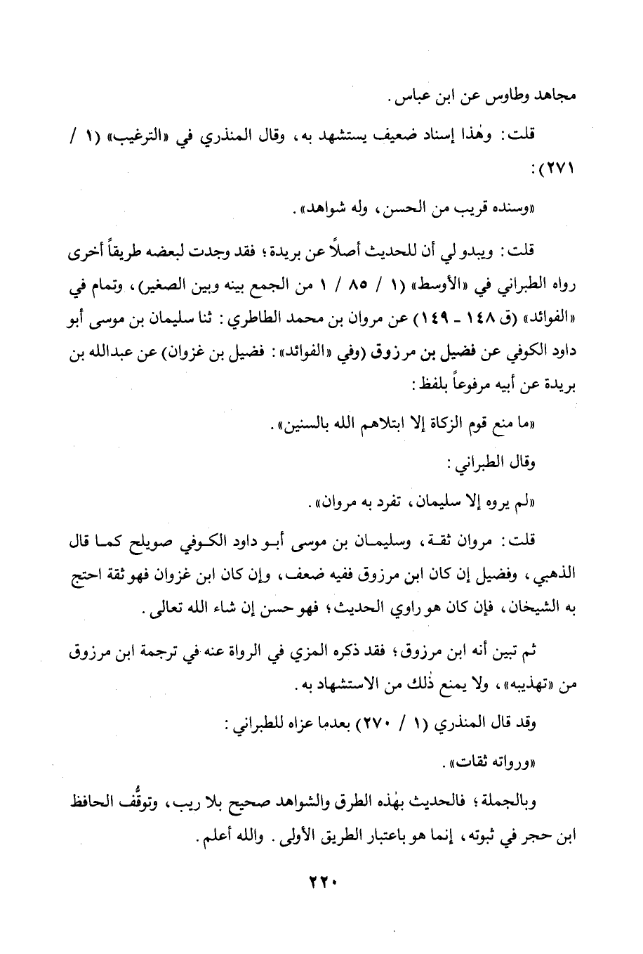 وقد قال المنذري (1 / 270) بعد ما عزاه للطبراني: