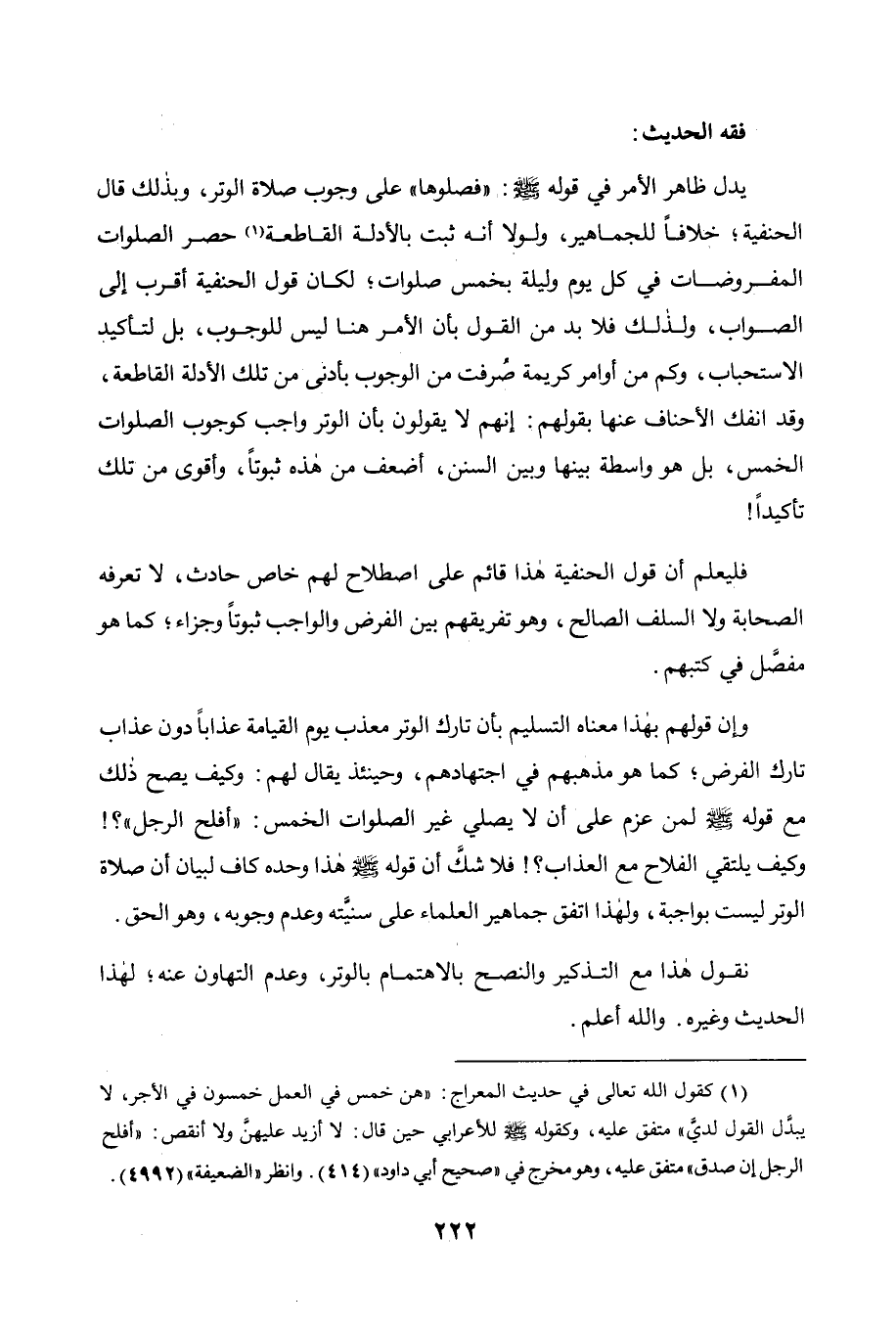 الأحناف عنها بقولهم إنهم لا يقولون بأن الوتر واجب كوجوب الصلوات الخمس، بل