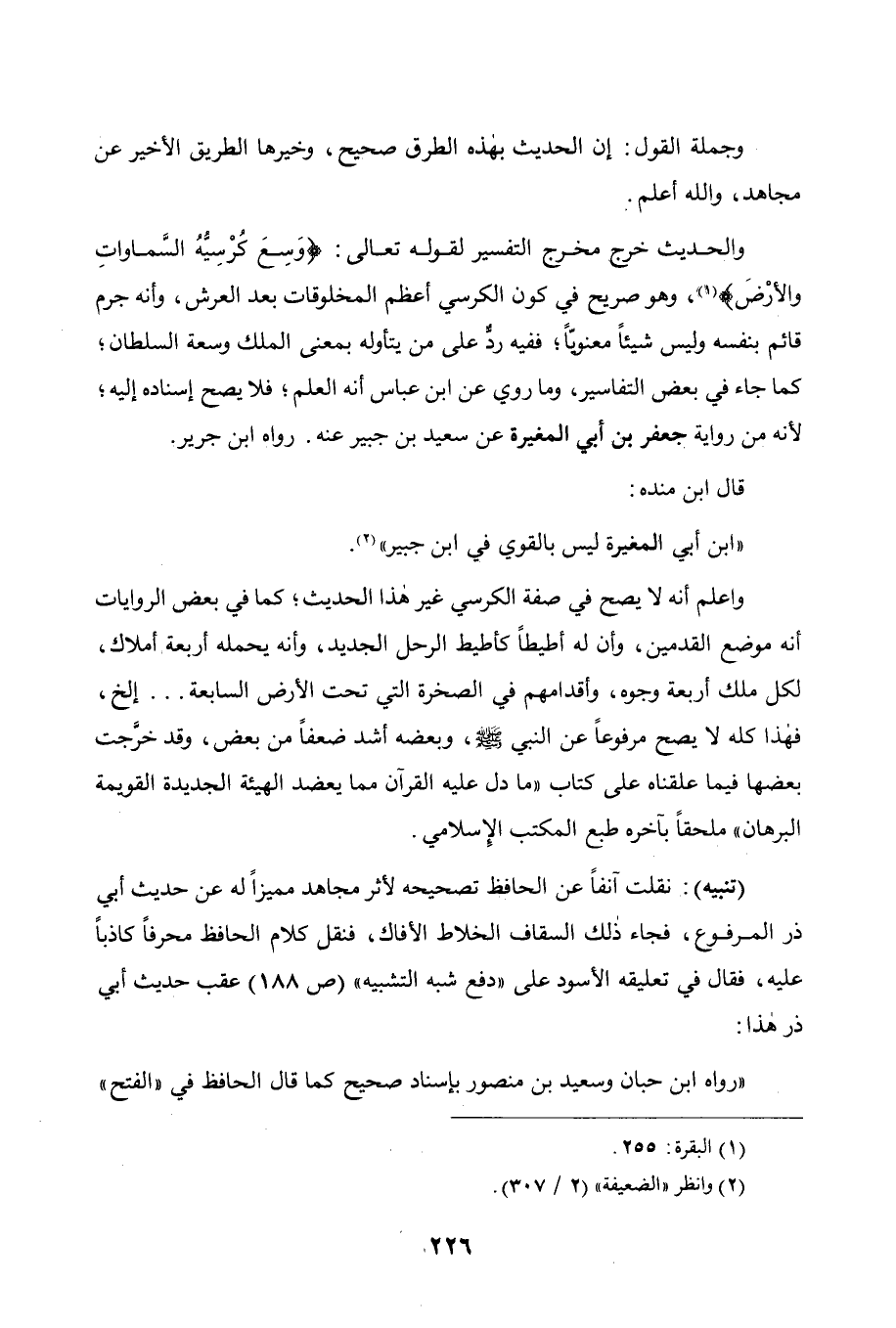 صريح في كون الكرسي أعظم المخلوقات بعد العرش، وأنه جرم قائم بنفسه وليس