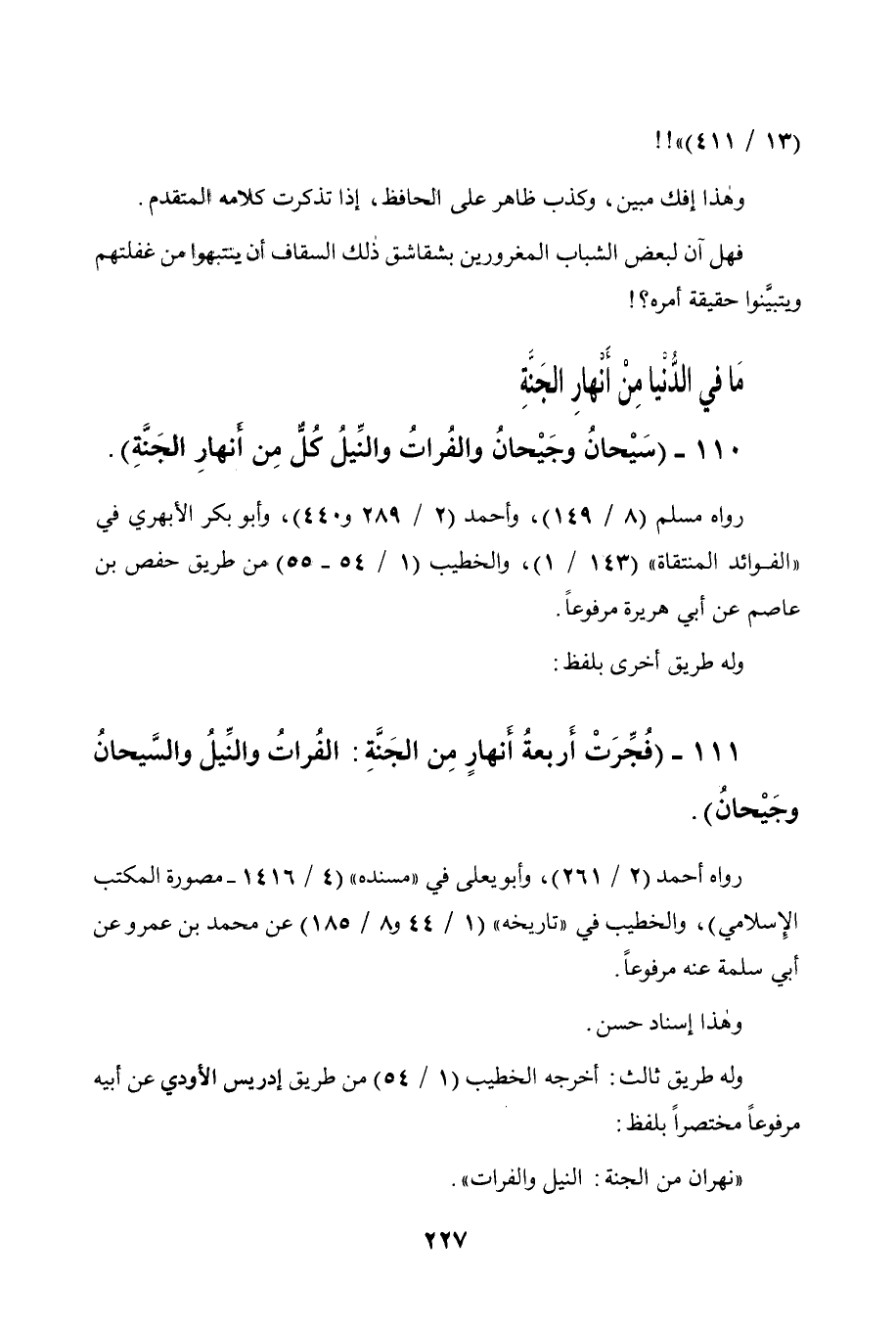 110 - " سيحان وجيحان والفرات والنيل كل من أنهار الجنة ".