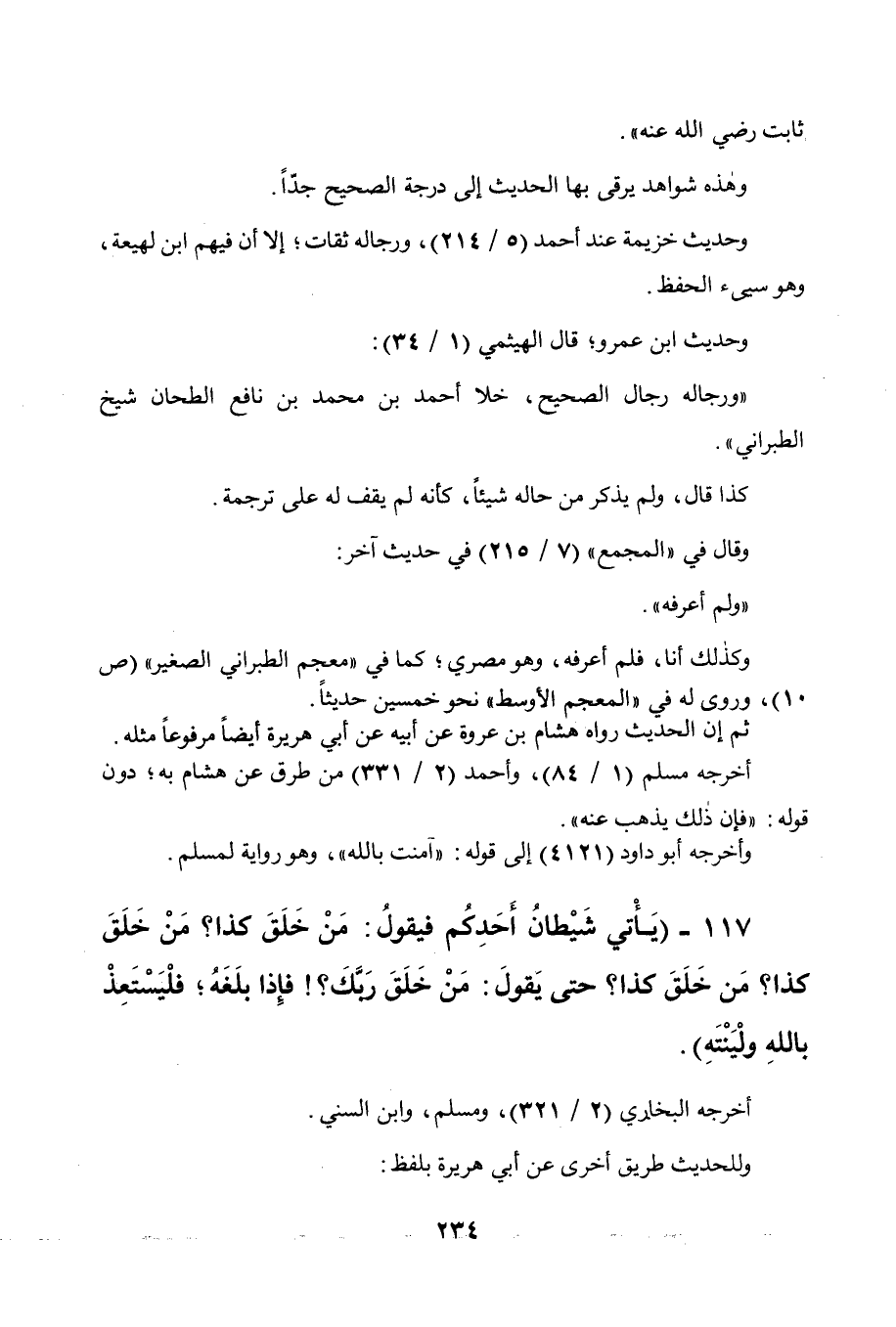 117 - " يأتي شيطان أحدكم فيقول: من خلق كذا؟ من خلق كذا؟ من خلق كذا؟ حتى يقول: