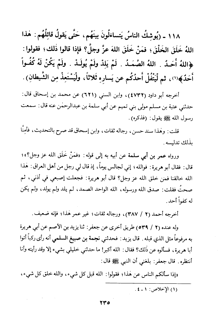 118 - " يوشك الناس يتساءلون بينهم حتى يقول قائلهم: هذا الله خلق الخلق فمن خلق