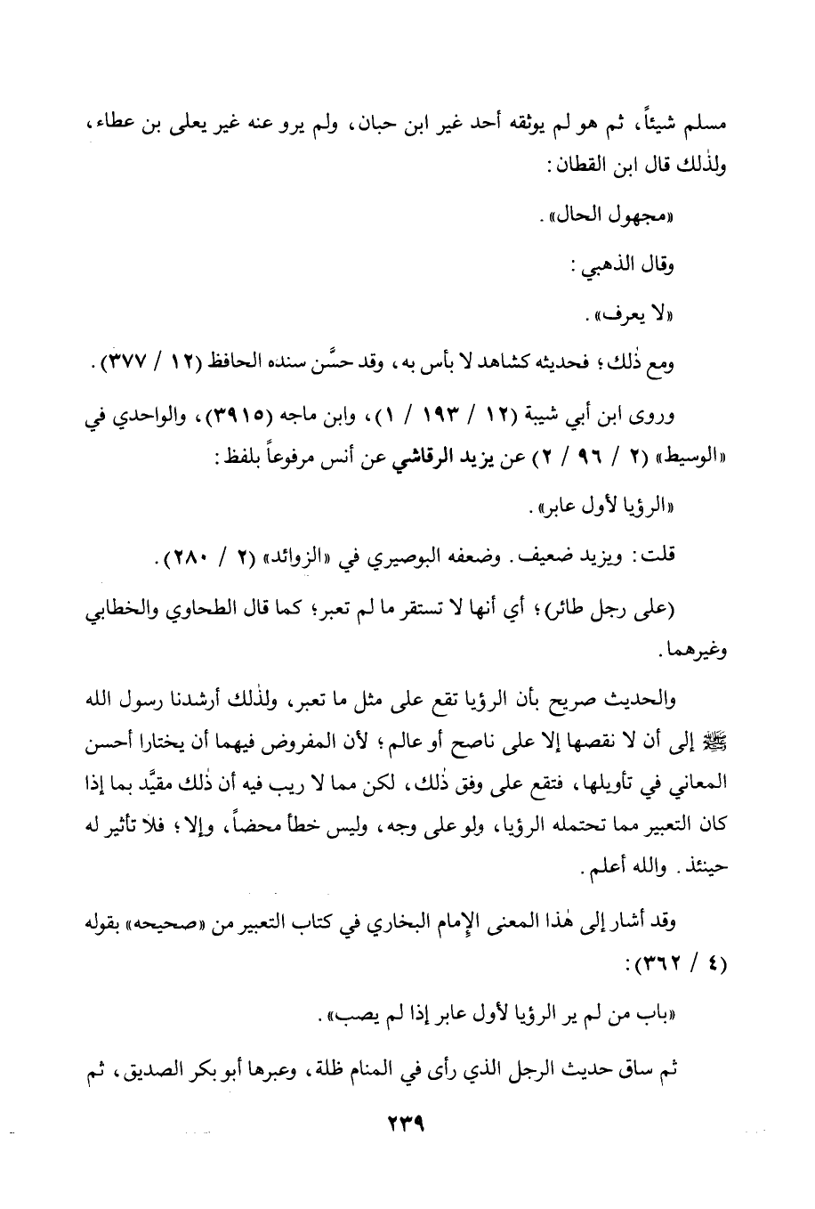 وقد أشار إلى هذا المعنى الإمام البخاري في " كتاب التعبير " من " صحيحه "